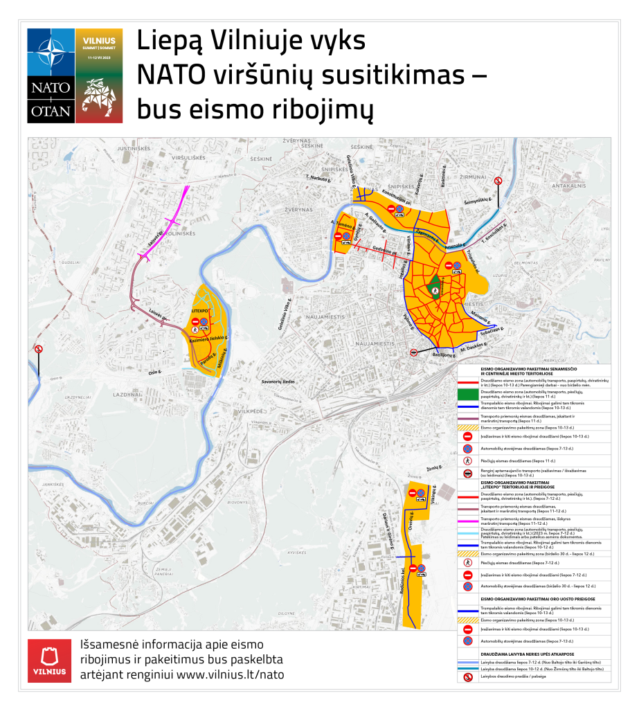 Visą aktualiausią informacija apie susitikimą, eismo ribojimus galima rasti nato.vilnius.lt