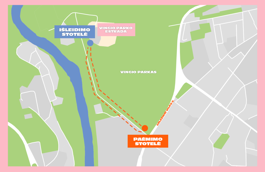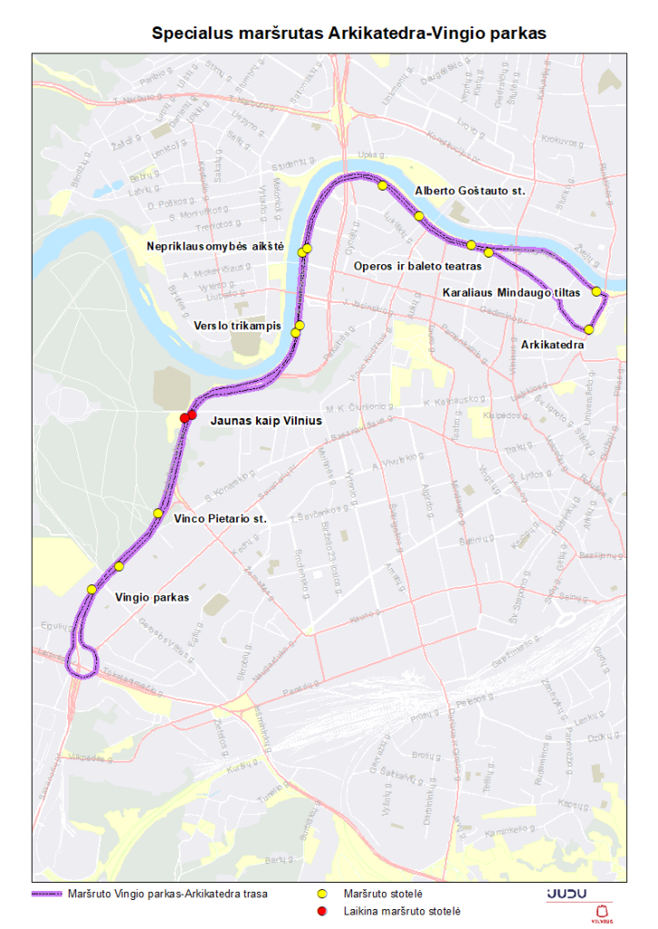 Specialus maršrutas nuo Arkikatedros ir elektrinio autobuso maršrutas Vingio parke