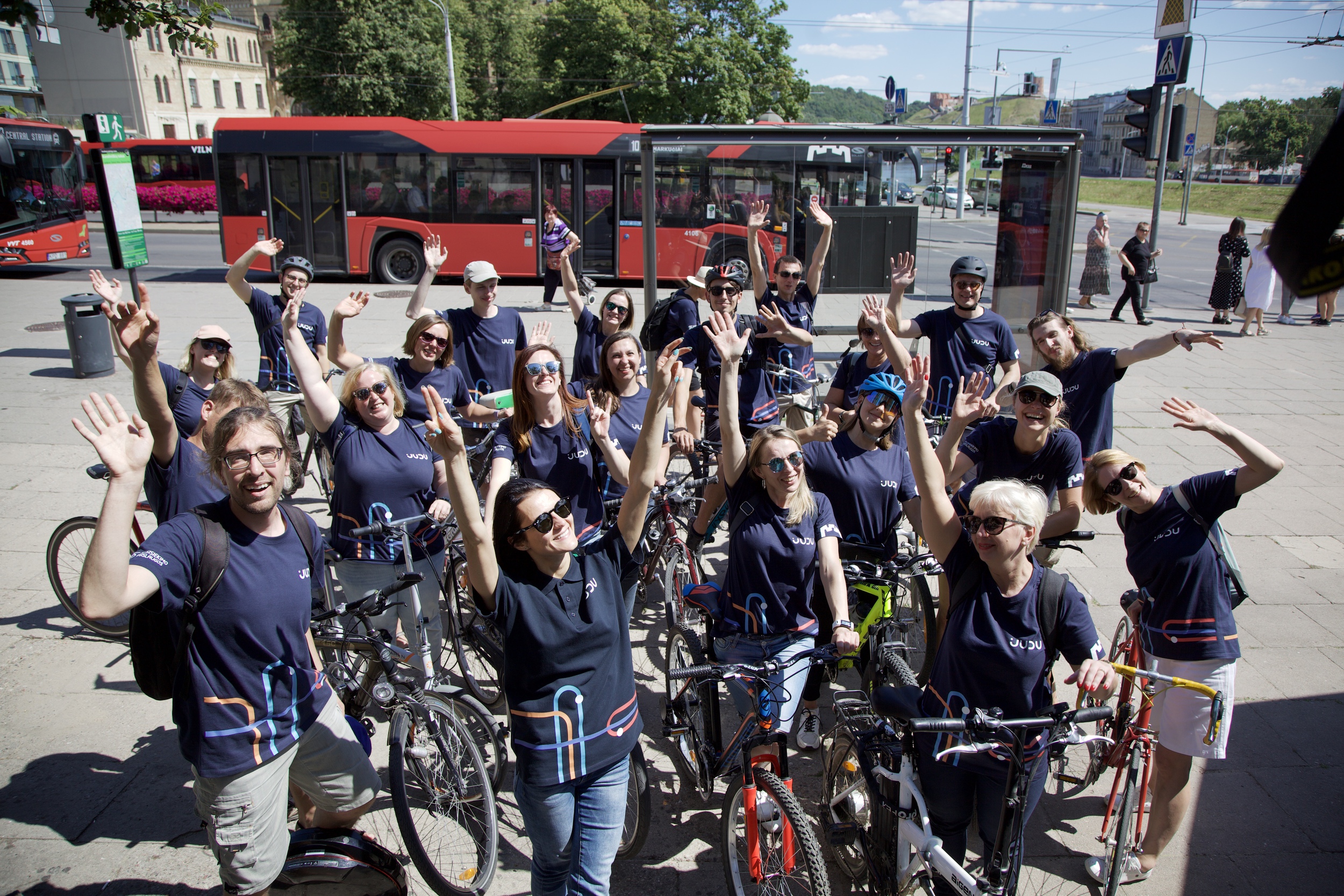 Daugiau kaip 20 choro atlikėjų miesto gatvėmis judėjo ryškiai ir vieningai pasipuošę – visus judumo būdus sostinėje vienijančio ženklo JUDU marškinėliais. JUDU ženklas Vilniuje pristatytas prieš keletą dienų. Šis bendras vardas nuo šiol „po vienu skėčiu“ sujungia judėjimą viešuoju transportu, automobiliu, dviračiu, paspirtuku, pėsčiomis ir kitus judumo būdus. JUDU miestiečiai palaipsniui matys skirtingose vietose – pavyzdžiui, ant miesto autobusų ir troleibusų, stotelių ir dviratininkų švieslentėse, viešojo transporto ekranuose, maršrutų schemose, paženklinti bus dviračių stovai ir atsirasiančios saugyklos, „Statyk ir važiuok“, multimodalinės aikštelės, JUDU planuojama vadinti naują elektroninio bilieto sistemą ir kitas su judumu Vilniuje susijusias paslaugas. Detaliau su Darnaus judumo mieste planu ir JUDU susipažinkite: www.judu.lt/vilnius
