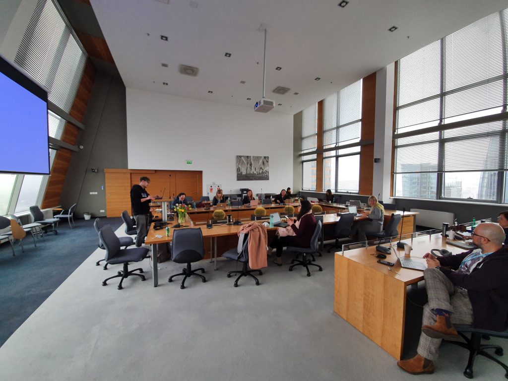 Dalis „Kino pavasario“ kūrėjų mėnesį dirbs savivaldybės 20-ajame aukšte. Pasak Vilniaus miesto mero Remigijaus Šimašiaus, Vilnius siekia išnaudoti visas viešųjų pastatų erdves, įpūsti joms gyvybės. Taip pat šis dalinis atsivėrimas gali būti geras pavyzdys, kaip sukurti saugius „darbinius burbulus“.