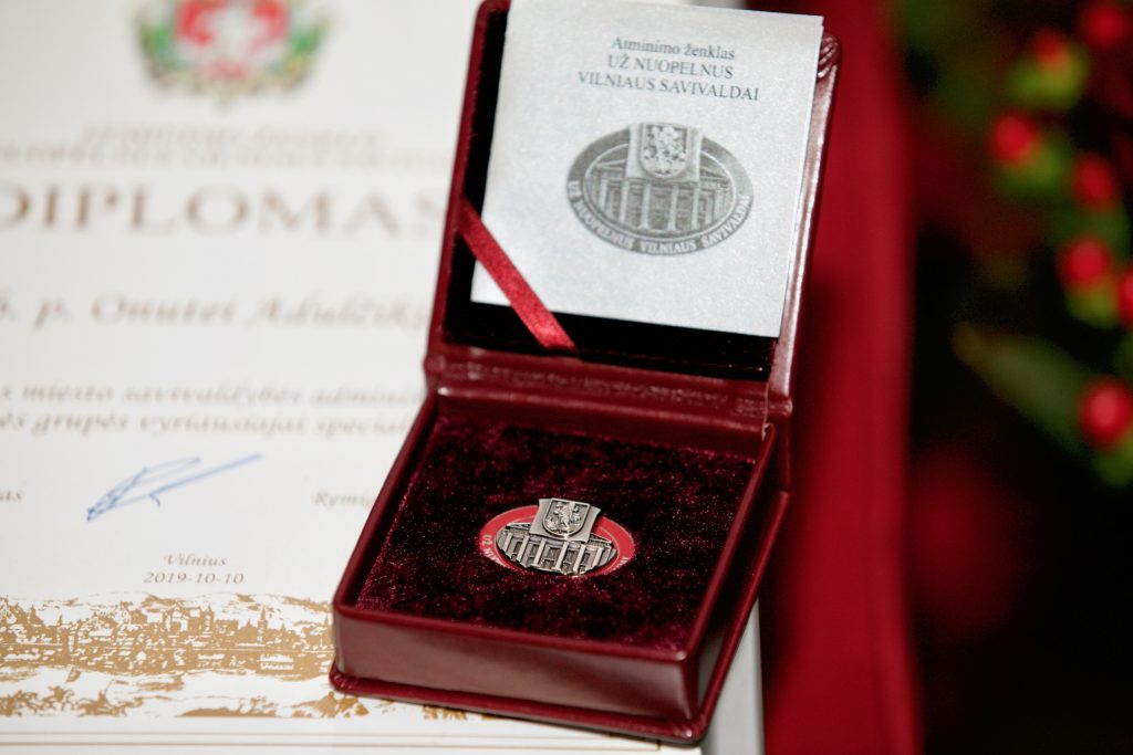 Vilniaus miesto savivaldybės atminimo ženklas „Už nuopelnus Vilniaus savivaldai“ tradiciškai teikiamas Vilniaus rotušėje Vietos savivaldos dieną – spalio 10-ąją.