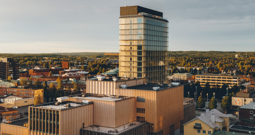Švedai Skellefteå mieste pasistatė ir vieną aukščiausių medinių pastatų pasaulyje – 20-ies aukštų multifunkcinį pastatą „Sara Kulturhus“. Jame yra dvi teatro, koncertų salės, muziejus, meno galerija, biblioteka, konferencijų centras, viešbutis. Pastato viduje yra jauki vieša erdvė, kurioje gali leisti laisvalaikį miestiečiai. Beveik viskas pastate – iš medžių, tik kai kurioms detalėms panaudotos kitos medžiagos.