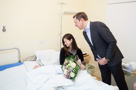 „Vilniuje angelai skraido visai šalia, tereikia nusišypsoti. Linkiu visai Jūsų šeimai sveikatos, laimės ir puikaus gyvenimo Vilniuje", - apsilankęs ligoninėje pirmąjį naujųjų rytą berniuko sulaukusiai Aušrai Kraučelienei linkėjo Vilniaus meras A. Zuokas.