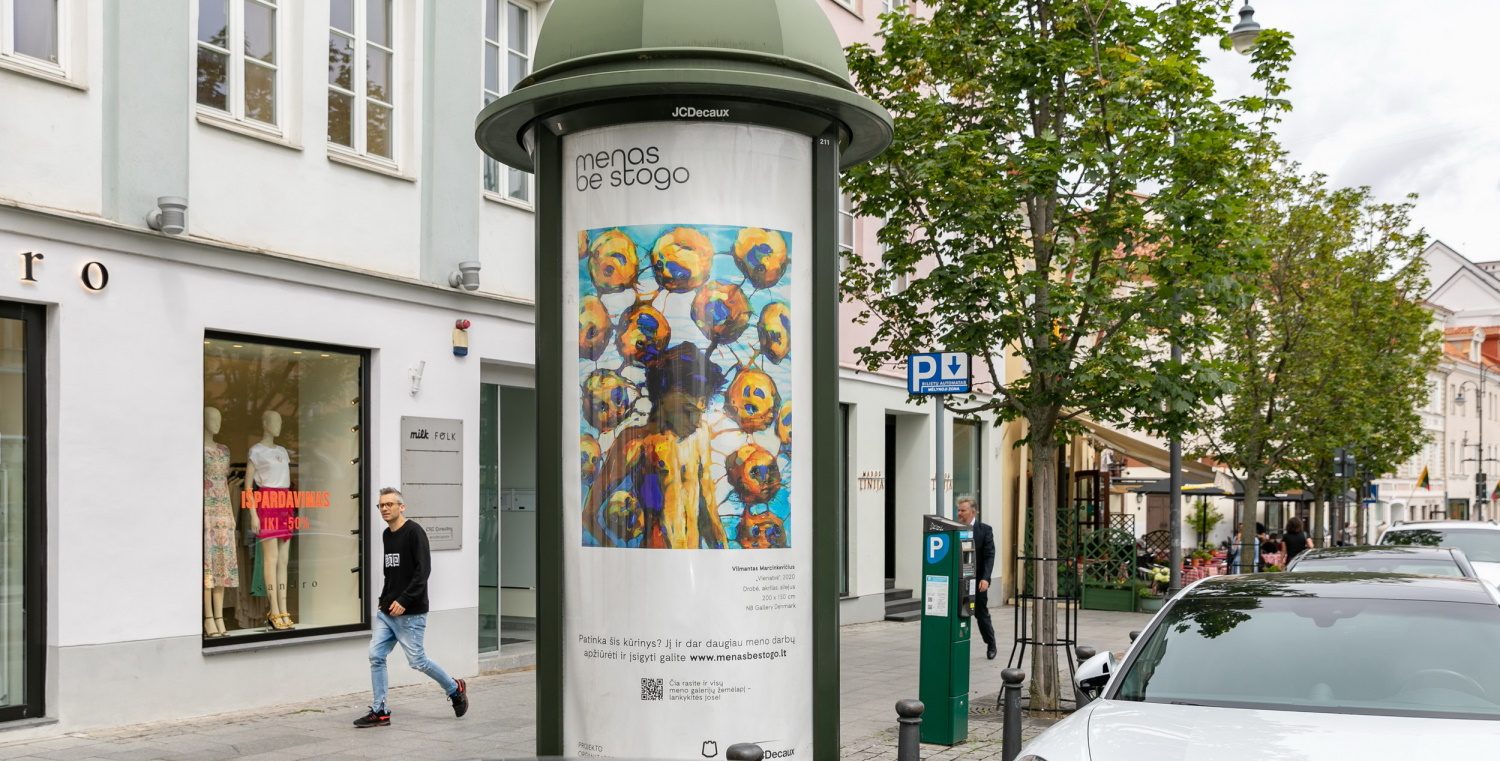 Projektas „Menas be stogo“ gimė prieš metus, po pirmojo karantino, siekiant padėti dėl pandemijos nukentėjusiems menininkams. Ši Vilniaus miesto savivaldybės ir lauko reklamos kompanijos „JCDecaux Lietuva“ iniciatyva sulaukė rekordinio kūrėjų susidomėjimo bei miestiečių įsitraukimo, kurie leidosi į meno paieškas netikėtose miesto vietose. Todėl šią vasarą projektas vėl grįš į sostines gatves.