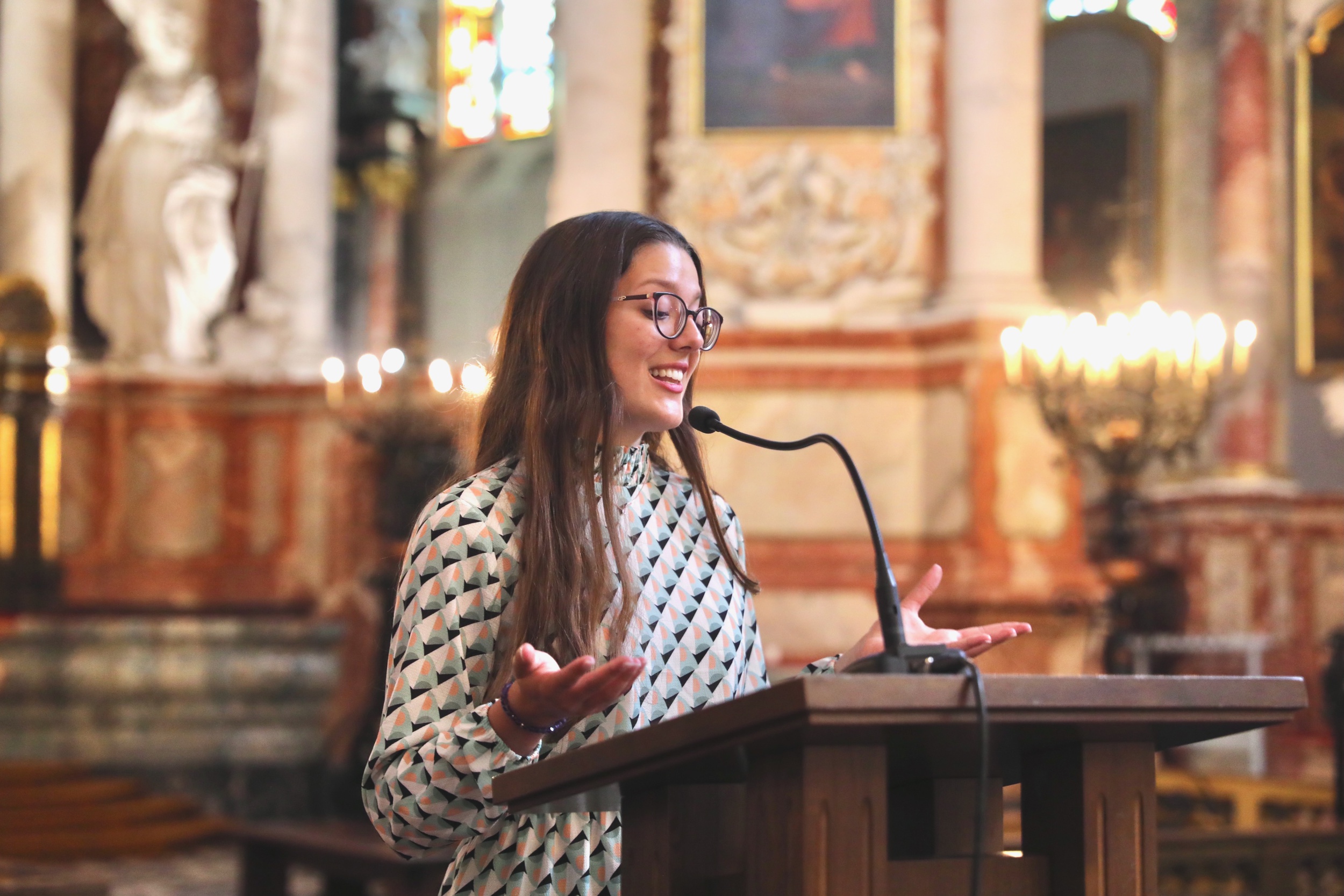 „Noriu, kad nepamirštumėte būti paprastais žmonėmis, kad prisimintumėte kadaise į mus nuo dviejų šimtų litų kupiūros žvelgusį Vydūną ir būtumėte ne tik žmonėmis sau, bet ir žmonėmis tautai ir žmonėmis žmonijai. Šimtukai, kuriuos gavome, prisideda ir prisidės prie to, kokie žmonės jau esame ir kokiais būsime – žmonėmis, kuriems rūpi visapusiškas išsilavinimas, žmonėmis, kuriems rūpi kultūra, miesto bei valstybės ateitis. Tad linkiu gyventi būnant dėl savęs, dėl kitų, būnant su kitais. Žinau, kad galime būti palaikantys draugai, įkvėpėjai ir lyderiai“, – sakė Vilniaus jėzuitų gimnazijos abiturientė Lidija Radzevičiūtė.