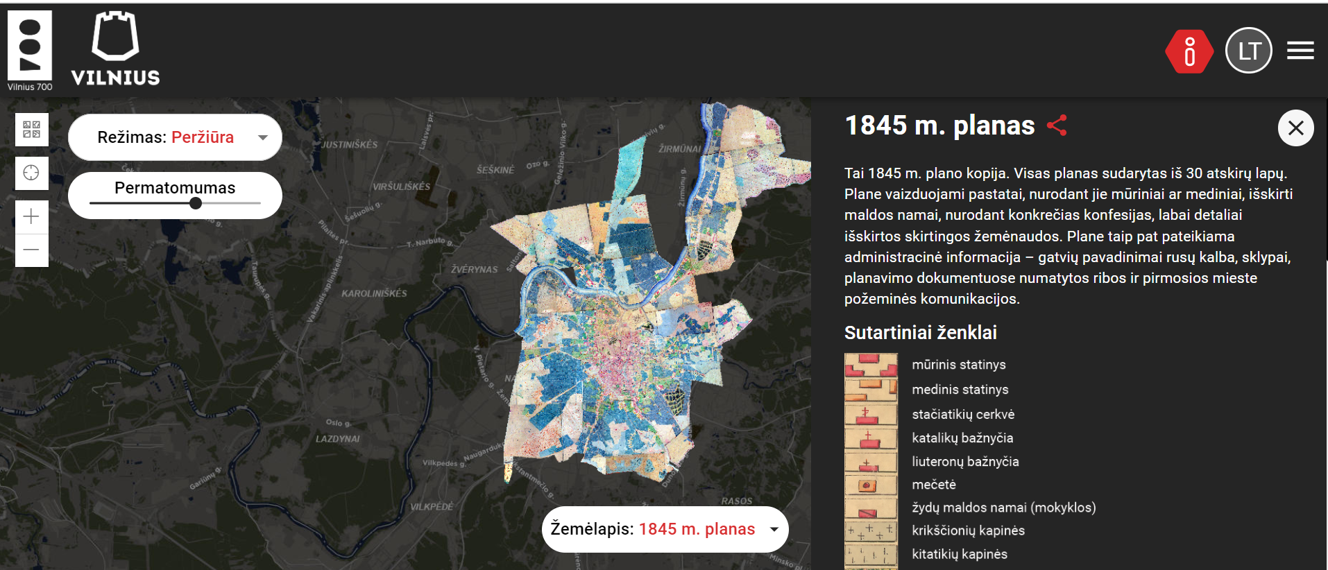 1845 m. miesto planas, „Vilniaus DNR“ internetinis puslapis.