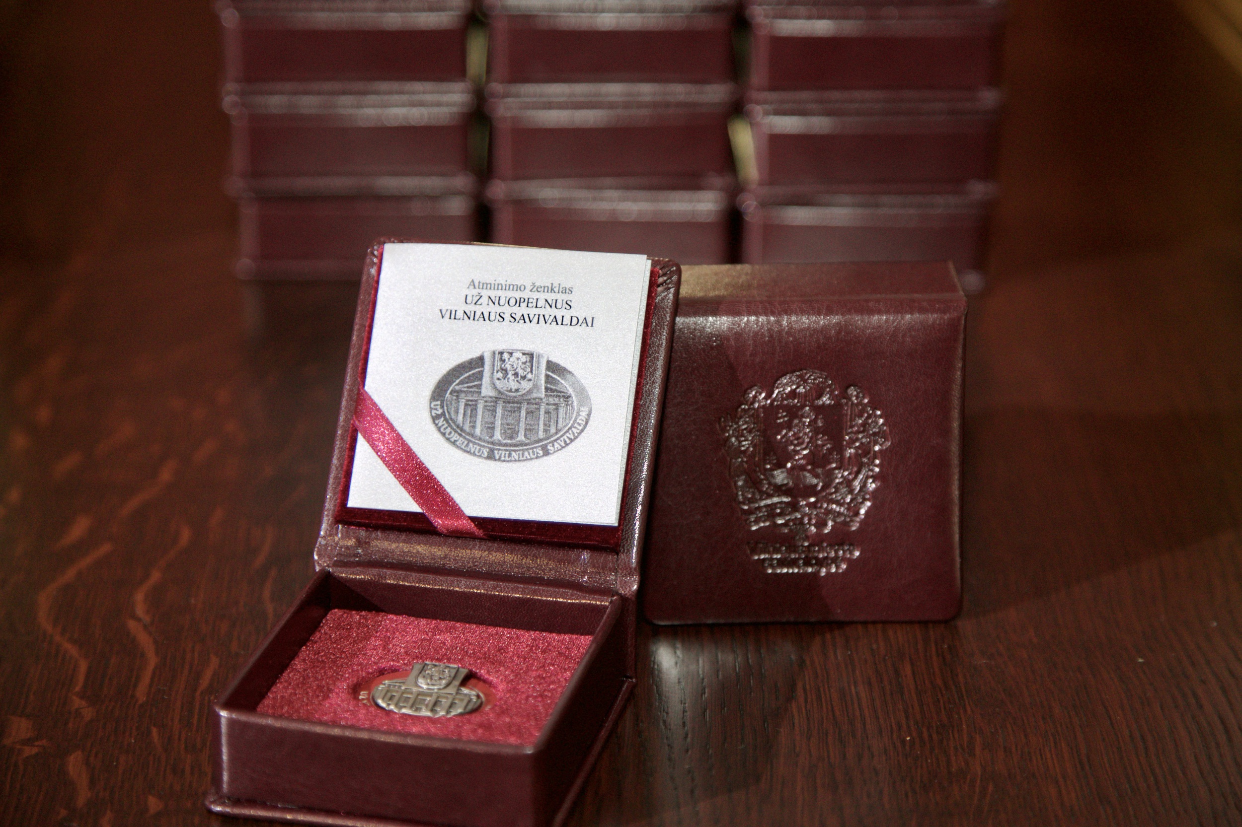 Rotušėje iškilmingai pagerbti 47 asmenys, iš jų – 29 savivaldybėje ar jos įstaigose dirbantys savo sričių profesionalai. Jiems įteikti atminimo ženklai – „Už nuopelnus Vilniaus savivaldai“. Savivaldybės administracijos direktorė Lina Koriznienė teigia, kad apdovanoti miestą mylintys ir jam kuriantys žmonės, nepasiduodantys dėl veržlesnio, žalesnio ir atviresnio Vilniaus.