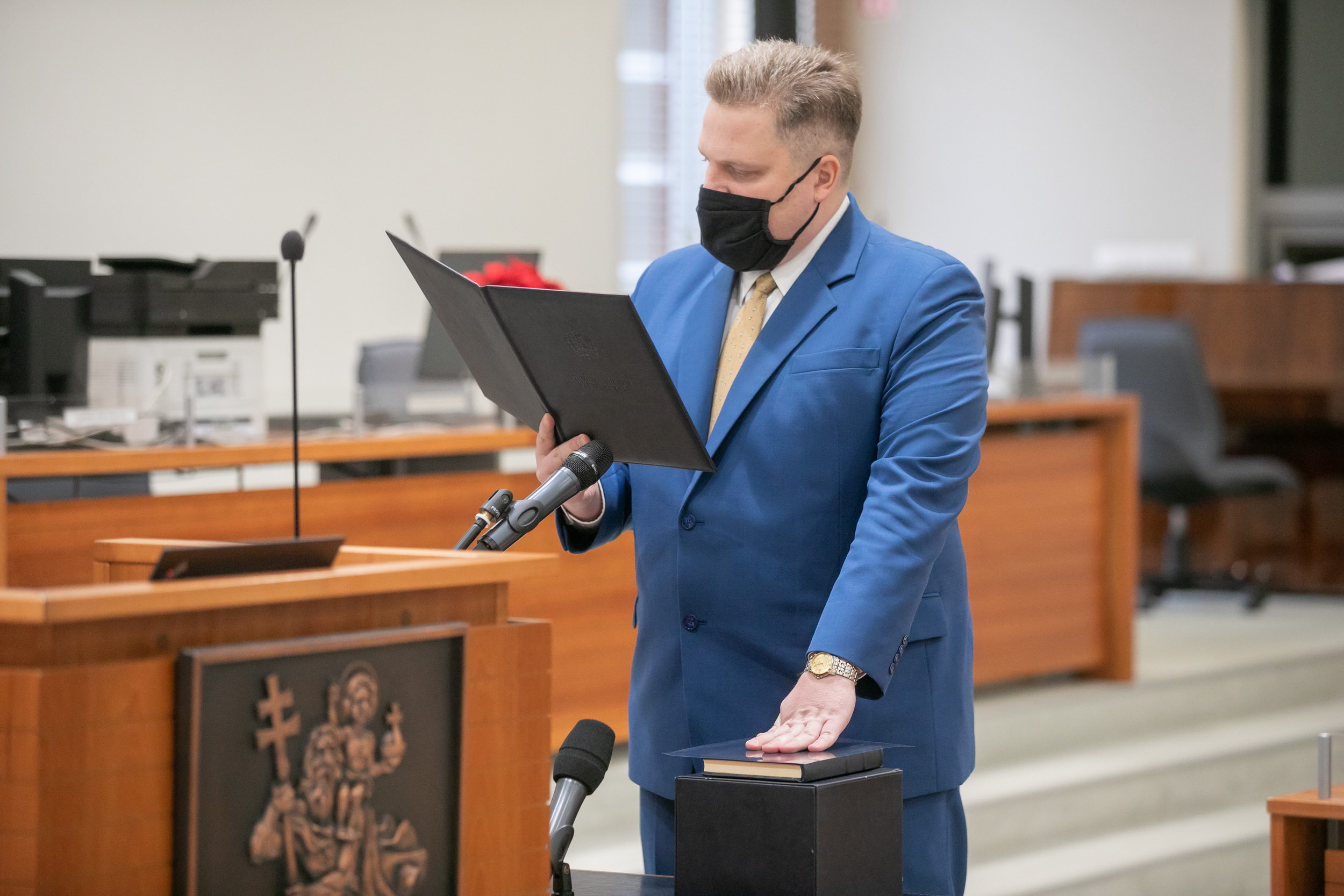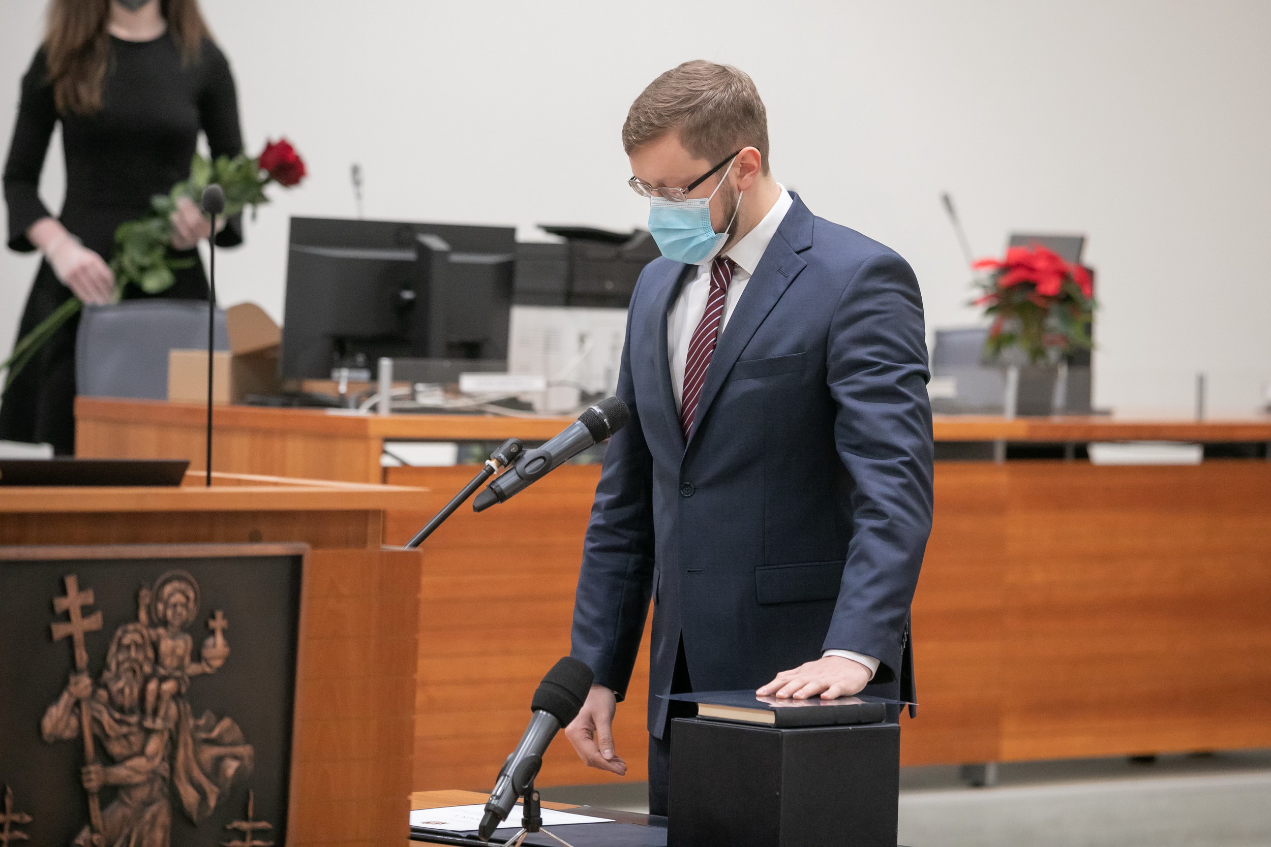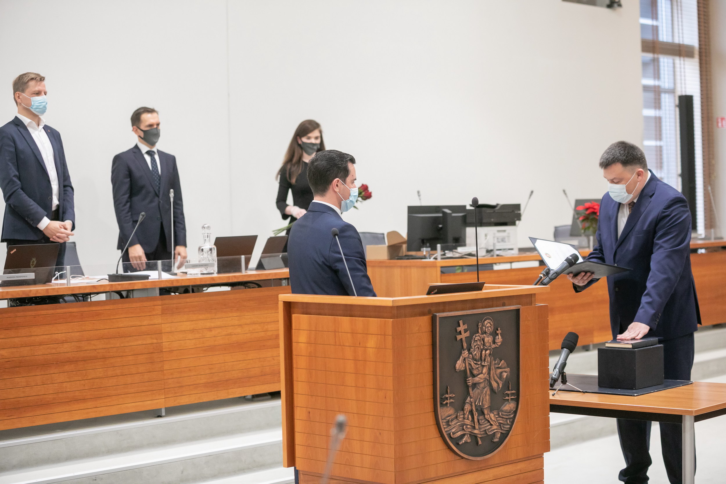 Sostinės Taryboje šiandien prisiekė 9 nauji nariai – Tomas Gulbinas, Domininkas Velička, Brigita Guobė, Rita Balčiūnienė, Andrius Katinas, Sergej Popov, Larisa Dmitrijeva, Taurimas Valys ir Vytautas Budreika. Jie pakeitė į Seimą išrinktus buvusius miesto Tarybos narius: Vytautą Mitalą, Eveliną Dobrovolską, Kasparą Adomaitį, Moniką Ošmianskienę, Tomą Vytautą Raskevičių, Arūną Valinską, Luką Savicką, Aidą Gedvilą ir Ievą Kačinskaitę-Urbonienę. Vilniaus miesto savivaldybėje ir toliau dirbs 51 Tarybos narys. Sostinės meras Remigijus Šimašius naujiesiems Tarybos nariams palinkėjo prasmingo darbo ir sėkmės, atstovaujant vilniečių interesams.