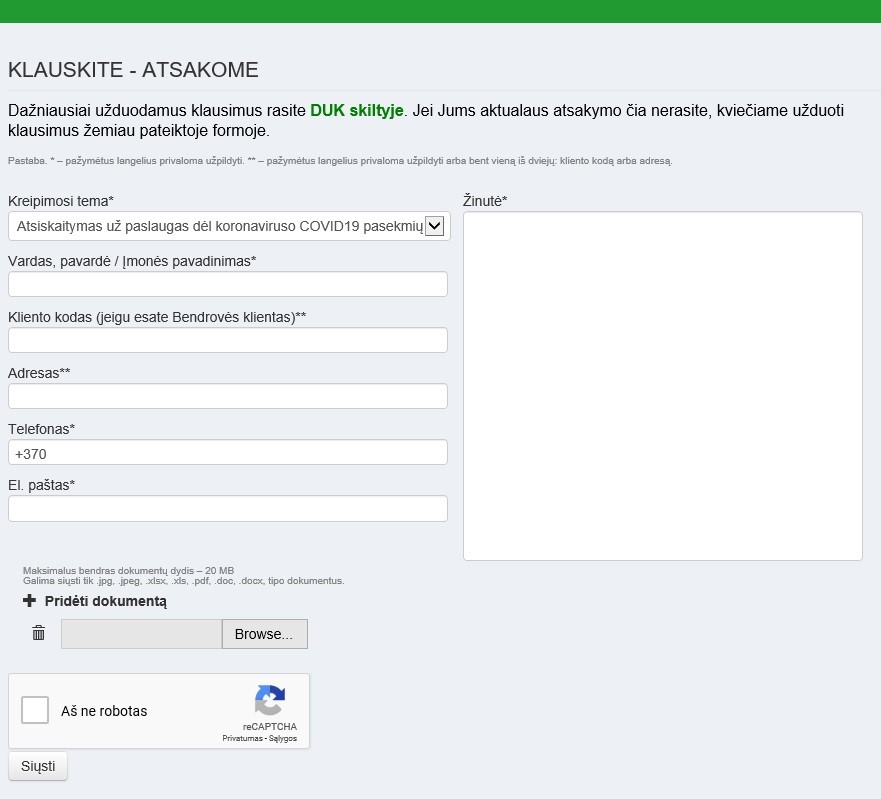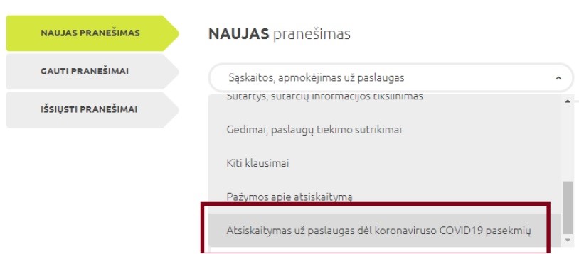 VŠT klientai, kurie yra susidūrę su minėtais finansiniais sunkumais dėl koronaviruso karantino, gali kreiptis į bendrovę prisijungę prie savitarnos svetainės arba pateikdami savo pranešimus VŠT tinklapio „Klauskite – atsakome“ formoje.