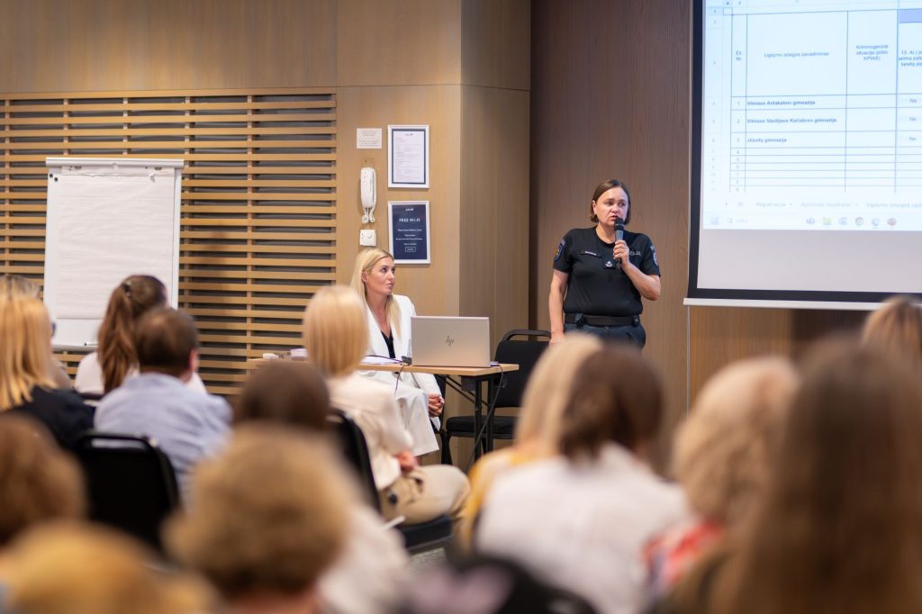 Vilniaus visuomenės sveikatos biuro koordinatorė pristatė pilotinėse mokyklose įgyvendintas projekto veiklas ir moksleivių tyrimų rezultatų svarbą planuojant tikslingas prevencijos priemones skirtinguose bendruomenės lygmenyse.