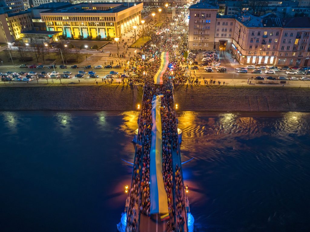 Žiauriausias grobikiško Rusijos karo prieš Ukrainą etapas tęsiasi jau trečius metus ir Lietuvos gyventojai nuo pat karo pradžios renkasi į Ukrainos palaikymo akcijas. Pirmosios eitynės Vilniuje įvyko 2022 metų vasario 24 d., tuomet susirinkusiųjų nešamos 50 metrų vėliavos judėjo nuo Lietuvos Respublikos Seimo prie agresorės Rusijos ambasados. Pernai tos pačios Lietuvos ir Ukrainos vėliavos nuvingiavo Vilniaus senamiesčiu, Katedros aikšte ir Gedimino prospektu iki Seimo.