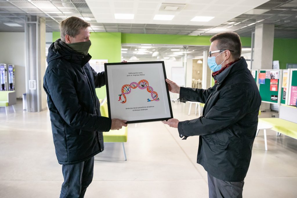 Profesoriaus vardo stipendijos iniciatyvą kitų metų pradžioje papildys ir dar vienas simbolinis žingsnis – Vilniuje, prie VU Gyvybės mokslų centro, planuojama atidengti genų žirklių technologijai įamžinti skirtą skulptūrą. Ją sukurti patikėta menininkei Eglei Žvirblytei.
